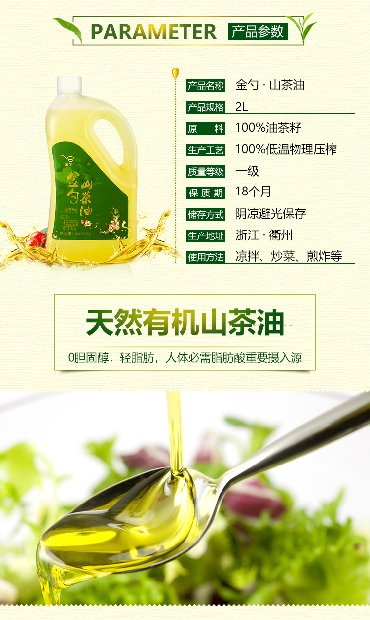 金勺純正山茶油 冷壓榨茶油 食用油 植物油 油茶籽油家庭裝1.8L