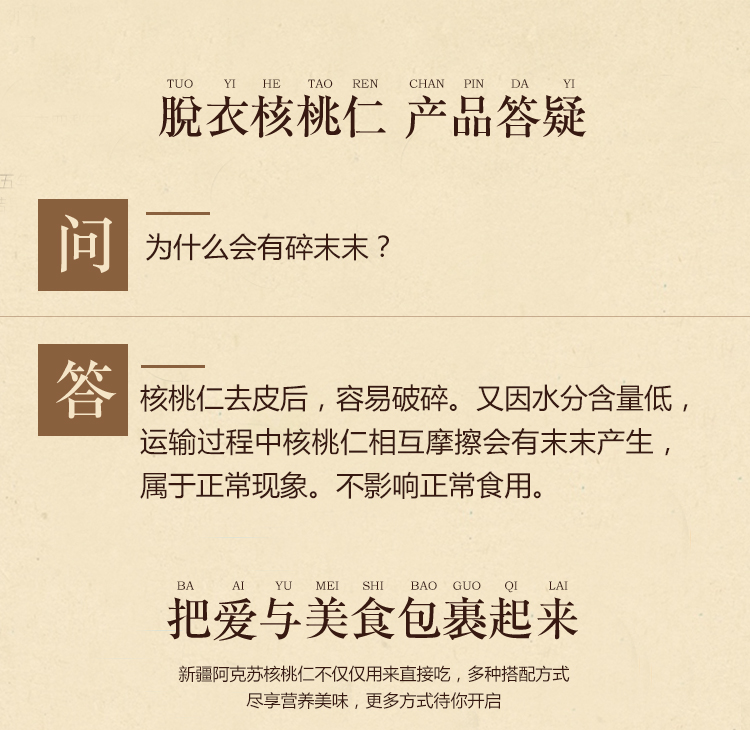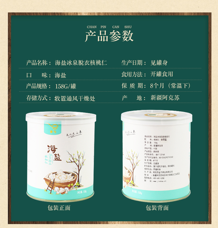 產(chǎn)品描述: 海鹽味冰泉脫衣核桃仁