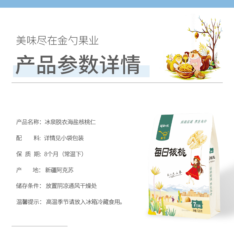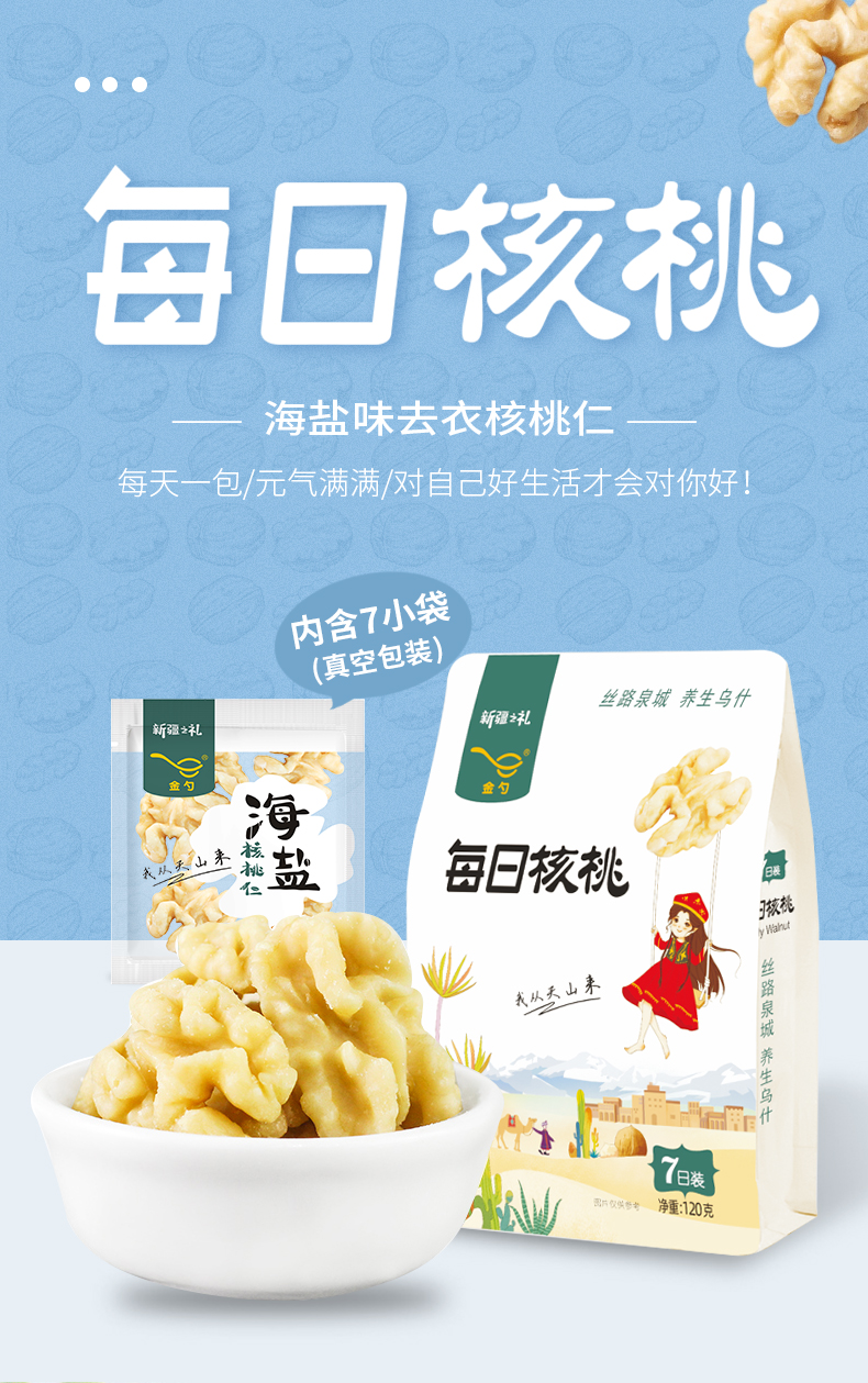 金勺去衣去皮海鹽味核桃仁新疆每日核桃兒童孕婦零食核桃120g